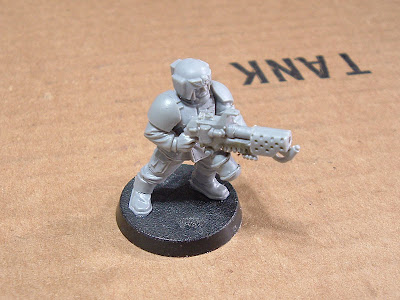 I plan to use the normal backpack flamers as heavy flamers, because the word “heavy”, when applied to flamers, says to me “shoots more flaming liquid a longer distance”, and not necessarily “bigger than a regular flamer”. Because the much larger backpack fuel tank and the beefier wand definitely do suggest exactly that, it’s perfect for a heavy flamer. It also looks nice next to the bulky heavy stubber.