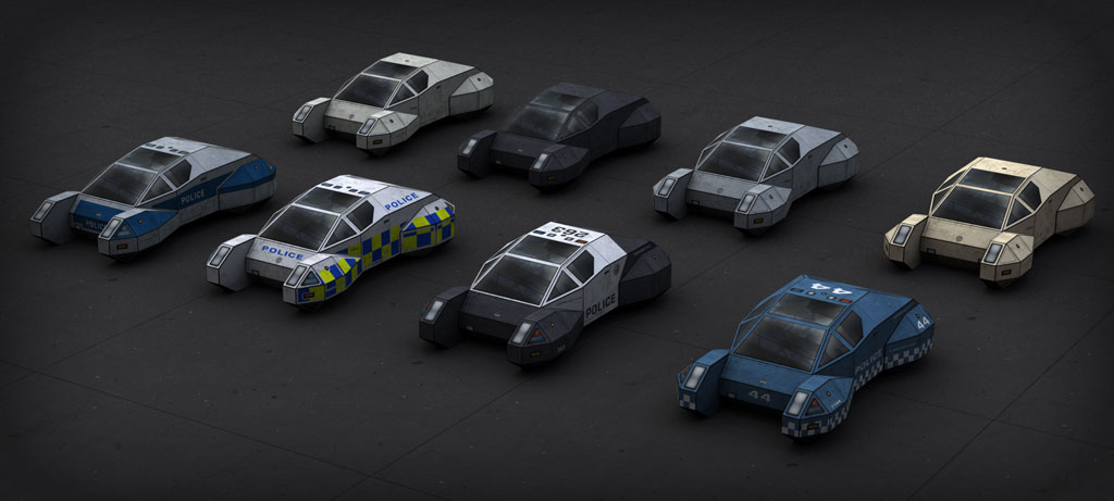 Group shot showing the 4 different police versions and the 4 unmarked colors: