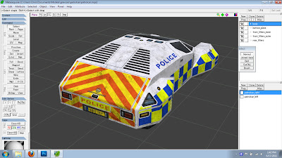 The UK version of the Interceptor has had additional work done to it as well. I changed the base color from silver to white, and split up the retroreflective decaling at panel lines and around openings so that it would look more like decals applied to a stock paint finish rather than paint.